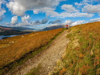 Me and The Breadlad having a sleepover? In a caravan? At the Lakes? With no grown ups to supervise us? What could possibly go wrong? Well, it is the Lakes, so the weather could go wrong, horrendously so usually from past experience and rain braying off the caravan roof all night long didn’t bode well. The following morning dawned bright, if not exactly cloudless. A brief discussion last night came up with a route traversing both sides of the Borrowdale valley, above Derwentwater, which is how we came to find ourselves dragging bikes onto the rocky top of Walla Crag after a steady warm up riding in from Threlkeld. Anything not made of stone was soggy but the view from the top more than compensated for the occasional squelchy patch. The descent from Walla to Ashness Bridge is just rocky enough to make you have a think but not to the stage where a tumble will probably win a free helicopter ride. The water flowing beneath Ashness Bridge was voluminous and voluble, testament to last night’s rain. We made like tourists for a short while before resuming our journey, the plan being to cross to the other side of the valley and return on the Catbells Bridleway. Part of our route turned out to be submerged, a few hardy walkers had resorted to bare feet to splodge through, complaining about the coldness of the water. It was time to show them what a couple of mountain bikers were made of. It turns out one of us was made of icing sugar and tissue paper, The Breadlad, who didn’t want to get his feet wet, bless him, opted for a meandering detour, even after being shown the optimum line through the water by a pensioner. Owing to a couple of misunderstandings and some less than perfect route finding, we became separated after the flooded section. One of us took the correct path to the road, The Breadlad stayed low on the lake side. After several phone calls we reconnected on the road, too far along to bother with the Catbells Bridleway, so we continued to Portinscale on tarmac, made our way to Keswick, picking up the Keswick to Threlkeld railway path for a steady 3 miles back to Threlkeld. Enjoying every moment of the scenic river crossings and late afternoon sunshine.