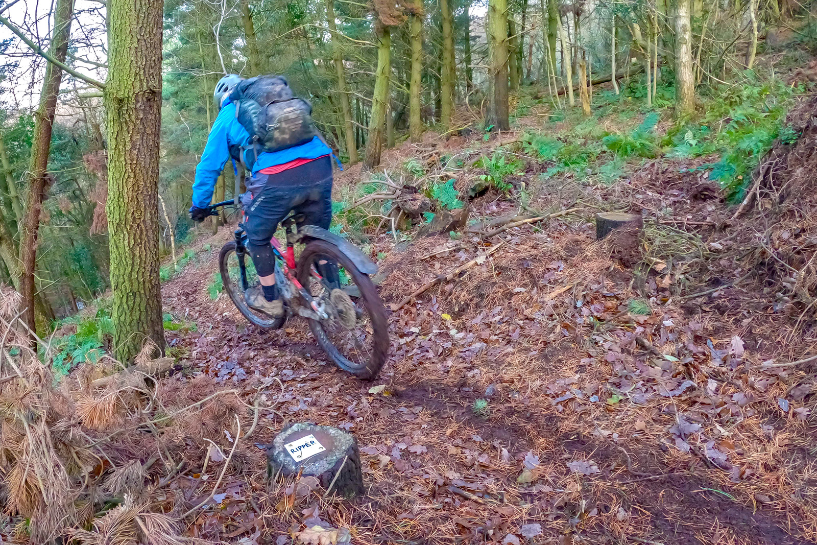 The second named storm of the season was forecast for this afternoon, something beginning with B, so I took myself out for a quick schlep in the slop around Guisborough Woods, everyone else cowering at the forecast like Daily Express readers. I lashed out four quid for the honour of parking at Pinchinthorpe Visitor Centre, daylight robbery considering not a penny of that money goes towards mountain bike trails but it is nice to visit the cafe at the end of the ride. A pretty bog standard ride around, through the woods, Roseberry Common, Newton Moor, Lonsdale Bowl, Sleddale, Highcliffe Nab and back down to the visitor centre, arriving at the cafe just as the rain began. The wind was pretty vicious for most of the time I was riding. When the big trees begin swaying, it’s time to question the wisdom of being in a forest but there’s always the voice of reason (or should that be treason?); the one which says there is more chance of being hit by lightning than being crushed under a falling tree. And it is nice and sheltered in the firs. So, how about it? One more trail can’t hurt. And it didn’t. I arrived at the cafe wet, muddy but mercifully devoid of conifer related crush injuries.